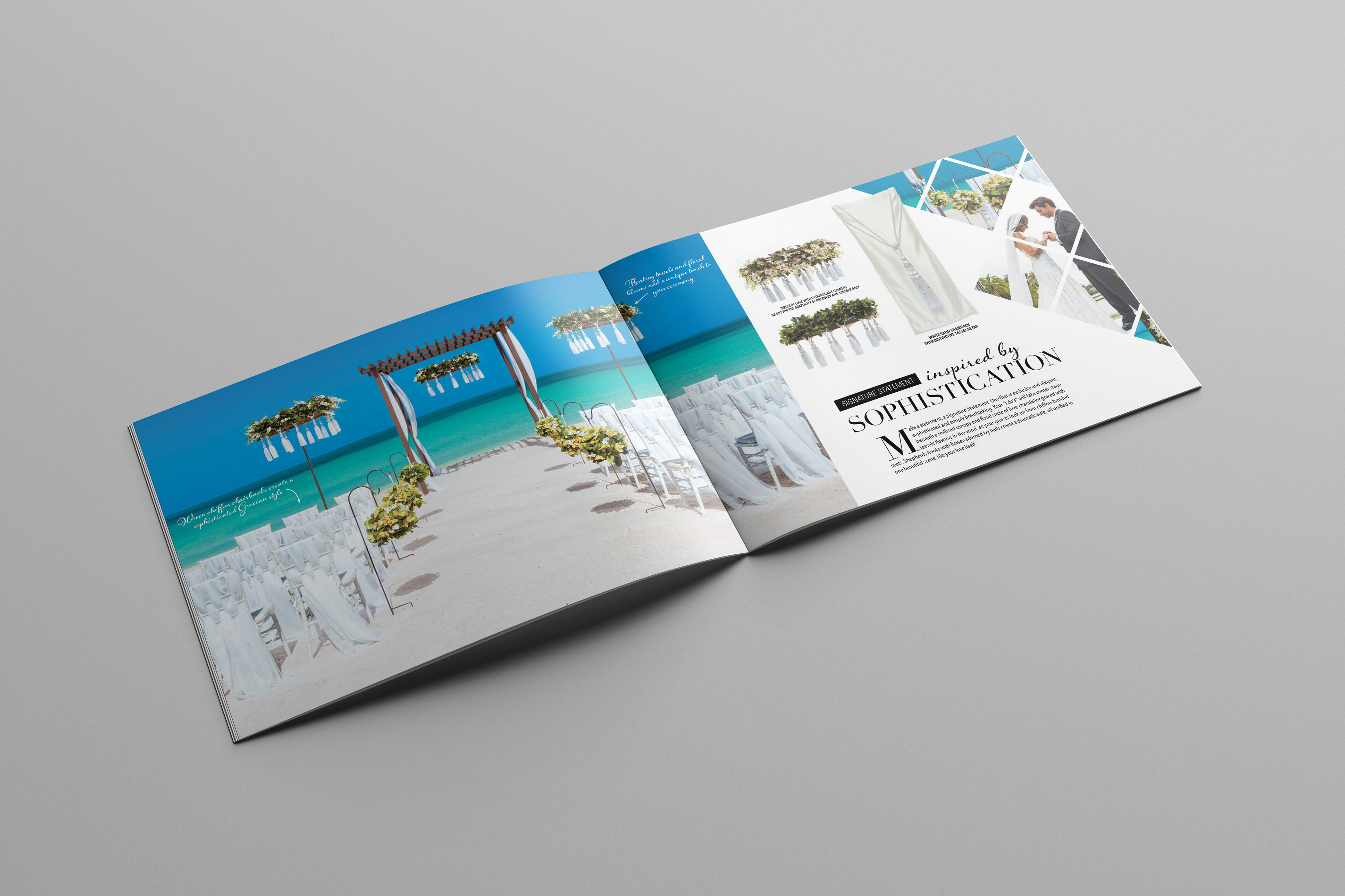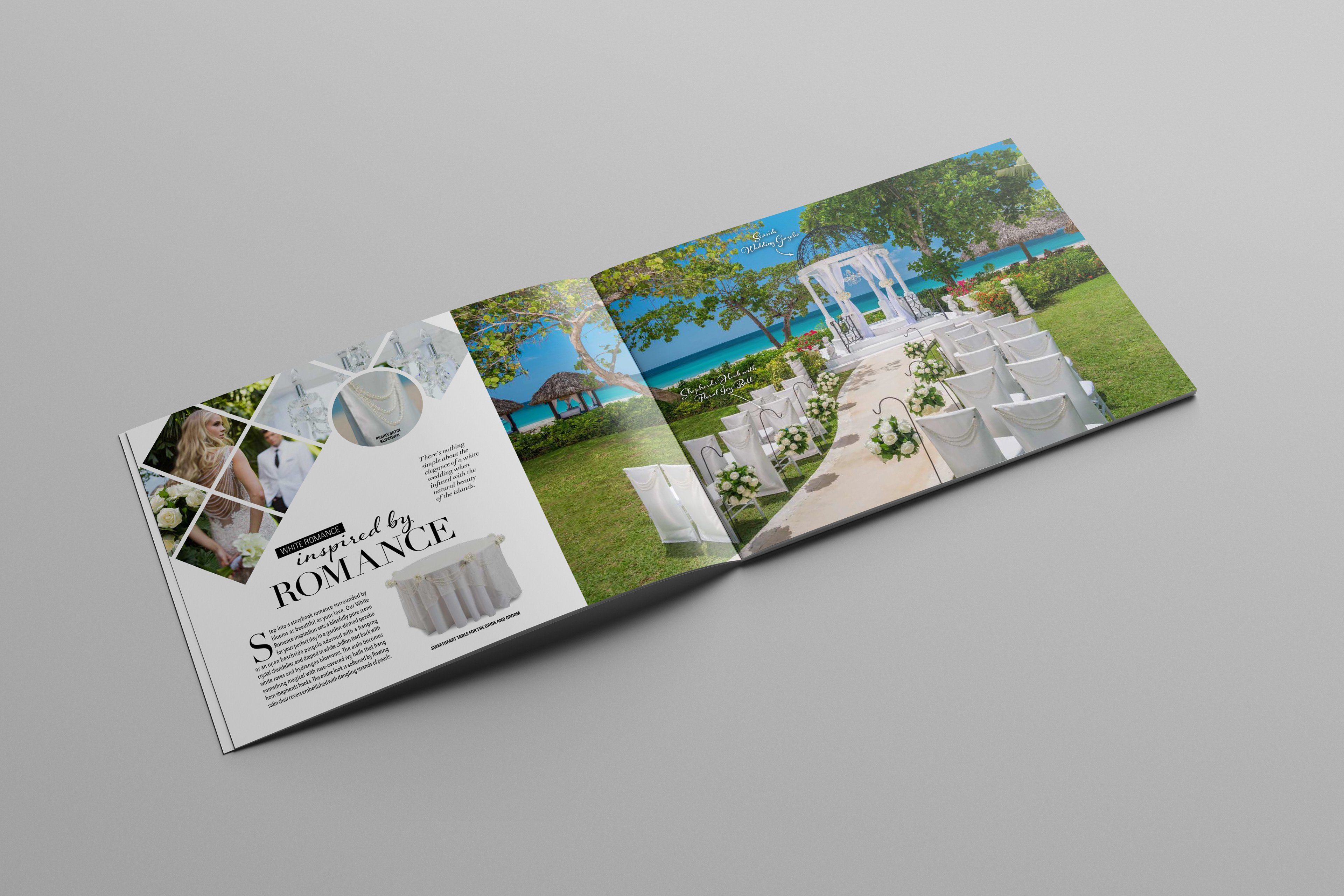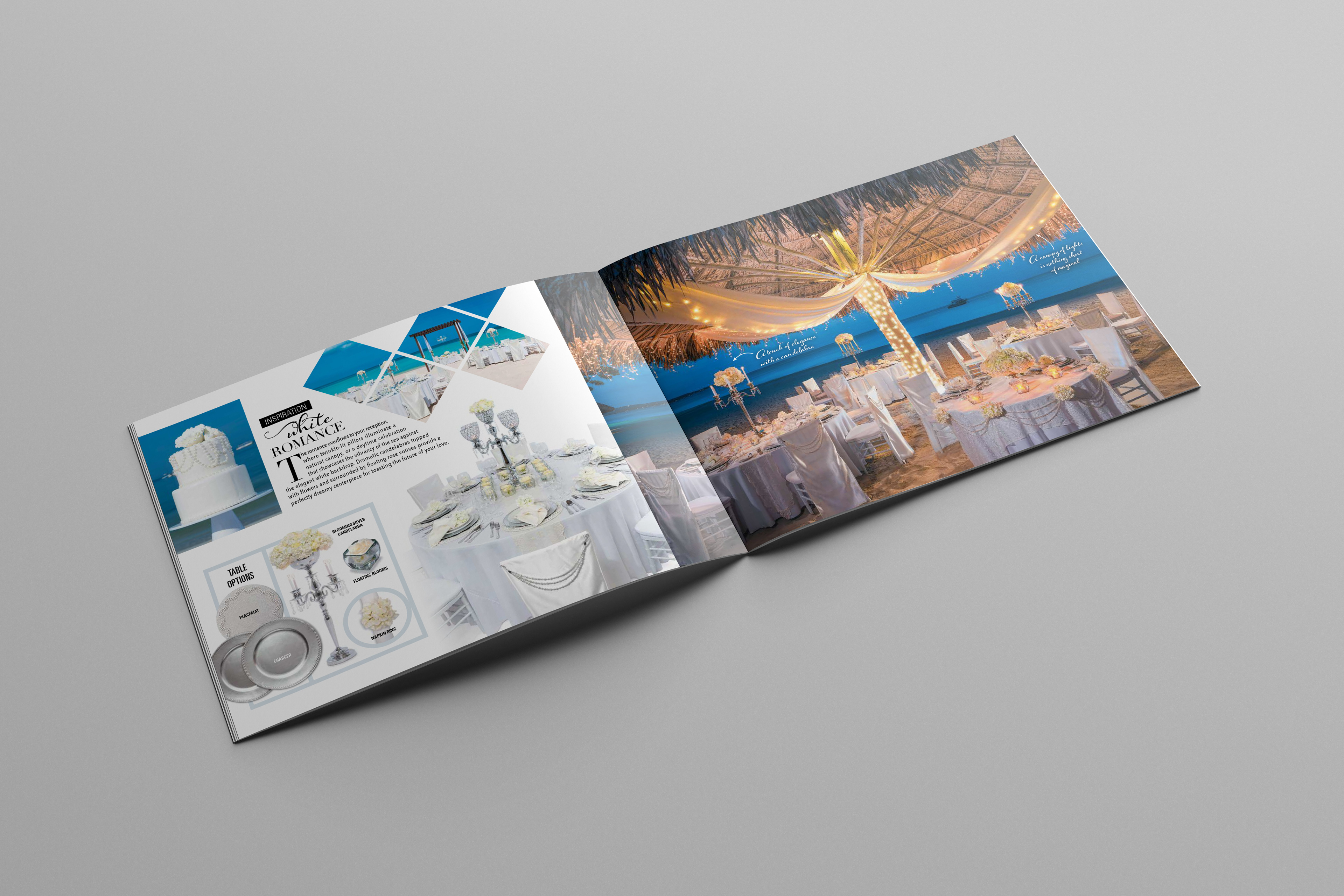 The 60-page brochure and catalog presents full wedding and reception design options, guides readers through the planning process, and highlights resort amenities including catering, bars, pre- and post-wedding activities, and honeymoon experiences..